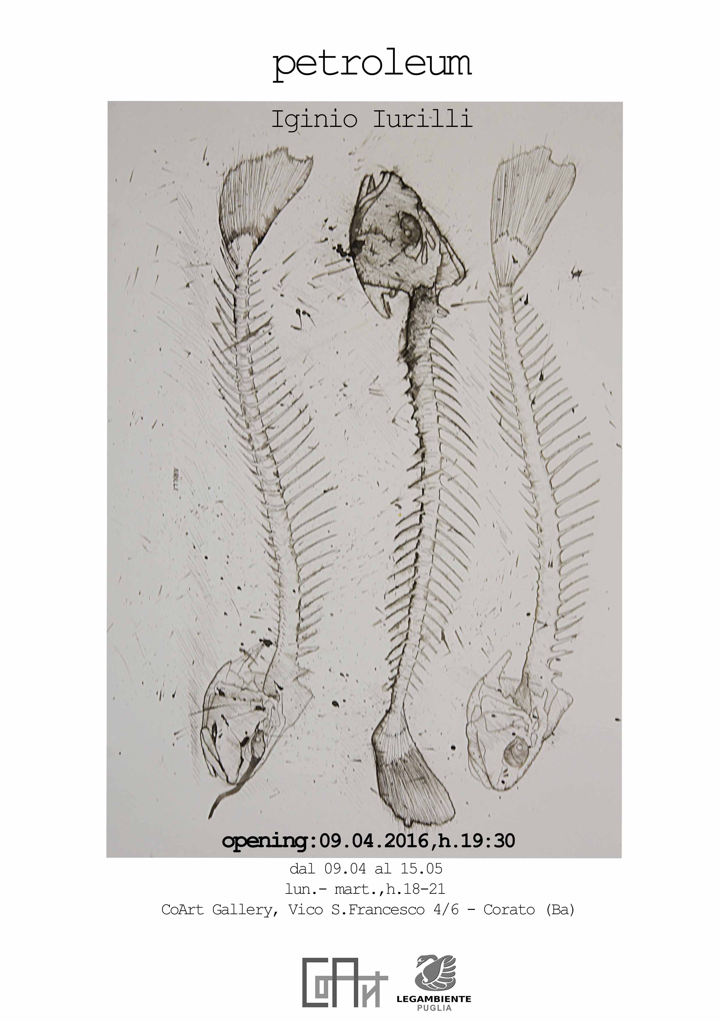 Iginio Iurilli presenta la sua mostra personale Petroleum, allestita negli spazi della CoArt Gallery di Corato (Ba) a cura di Isabella Battista e Alexander Larrarte, con il patrocinio di Lagambiente Puglia. L’esposizione sarà visitabile a partire da sabato 9 aprile alle ore 19:30.