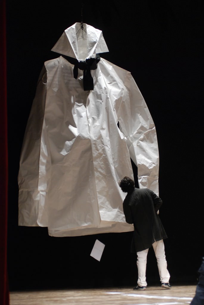 Una spiritualità contemporanea di grande respiro espressa attraverso enormi camicie di carta bianca sospese nell’aria, una lirica intimista estremamente moderna nel suo concetto filosofico di uomo e cosmo, grandezza e miseria.
