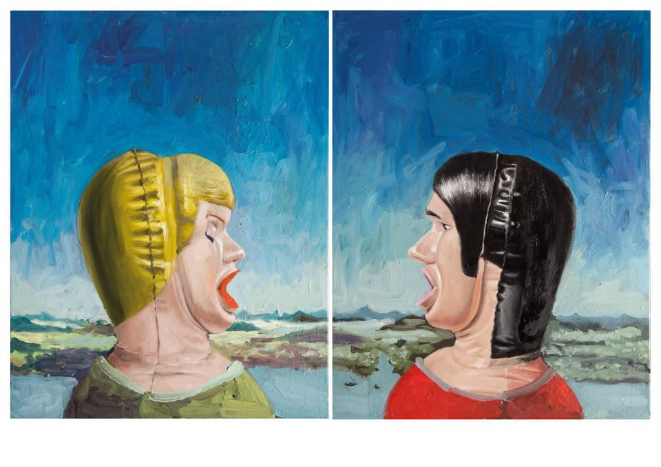 Dalla riappropriazione storica alle incursioni destabilizzanti, il corto circuito che si mette in atto diventa la chiave per leggere - più o meno tra le righe - Melodia maggiore in manto rosa. Chiave che apre la gabbia d'oro in cui è stata spesso "chiusa" la sua pittura tecnica e minuziosa, che aprendosi si libera verso qualcosa di istintivo e gestuale, ironico e sdrammatizzante. E allora ecco apparire tra figure sacre e icone rinascimentali, strani personaggi, giraffe, feticci, volatili, bambole in silicone, tra sorpresa e nonsense, così come lascia intuire Il titolo. Un po' criptico e un po' ludico, in realtà sono voci quasi suggerite dal caso; è un gioco tra parole, messe assieme in maniera armoniosa, che non vanno indagate, ma semplicemente accettate.