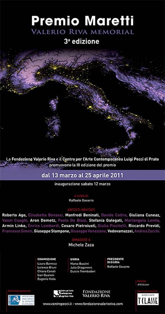 Valerio Riva Foundation, in association with the Center for Contemporary Art Luigi Pecci, is glad to announce the third edition of Maretti Award – Valerio Riva Memorial, to be held in the exhibition areas of the Pecci Center from March 13 to April 25, 2011. Opening by invitation: Saturday, March 12, 6 p.m.