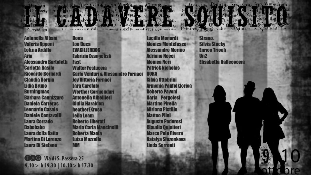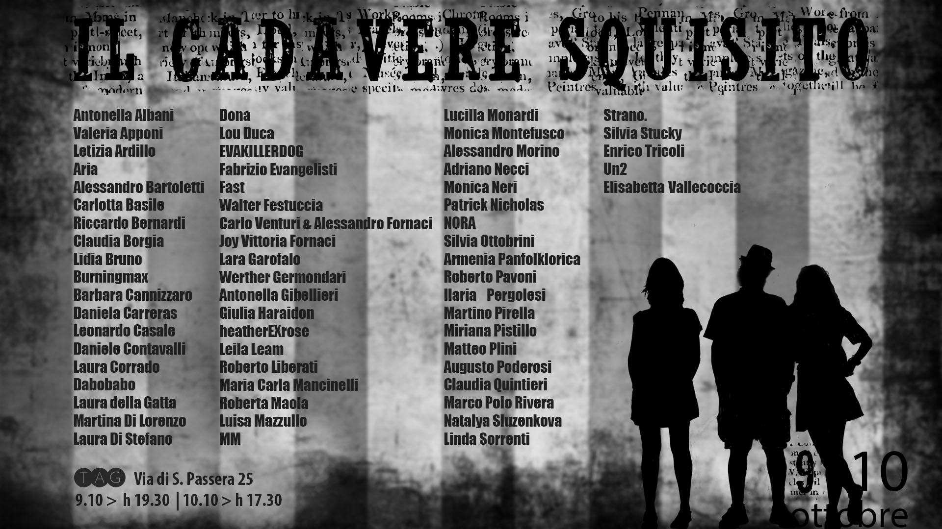 Il Cadavere Squisito è un evento periodico organizzato dalla Tevere Art Gallery e dai curatori Barbara Lalle, Barbara Visca e Roberto Cavallini. Con il Cadavere Squisito la galleria vuole proporsi come un foglio bianco sul quale invitare le menti creative più varie a lasciare un segno.