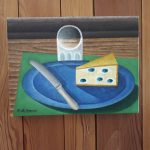 Maria Teresa Carbonato restituisce con i suoi piccoli quadri a olio la quieta bellezza della natura mentre sono l’allegria dei dolci colorati e le sfumature violacee di un grappolo d’uva a guidare la ricerca di Gilda Cefariello e Maria Cristina Tebaldi. In Dino de Simone il “Bleu d’Aoste” domina l’intimità di un pasto silenzioso e ancora blu sono le cianotipie di nature morte proposte da Laura Di Fazio. La cantina è il luogo d’ispirazione per La Fucina di Efesto con il suo funzionale “Apribacco mentre critica è la piramide del fast-food di Mater-0 e giovanile e ironica la grafica di Simone Mattia dedicata al “broccolo”. L’origine di ogni nutrimento, il seme, vede una originale traduzione tessile in Anna Tamborini e una trasfigurazione cosmica nella rotondità terrestre di una ciotola con Armanda Verdirame. Trasgressive e pop le invenzioni sessuate di Michele Basile che traspone il senso letterale dei frutti in sensi figurati o i gelati policromi e luminosi di Michela Pomaro mentre con Donatella Chiarenza un ananas emerge maestoso tra la trama e l’ordito di una tessitura.