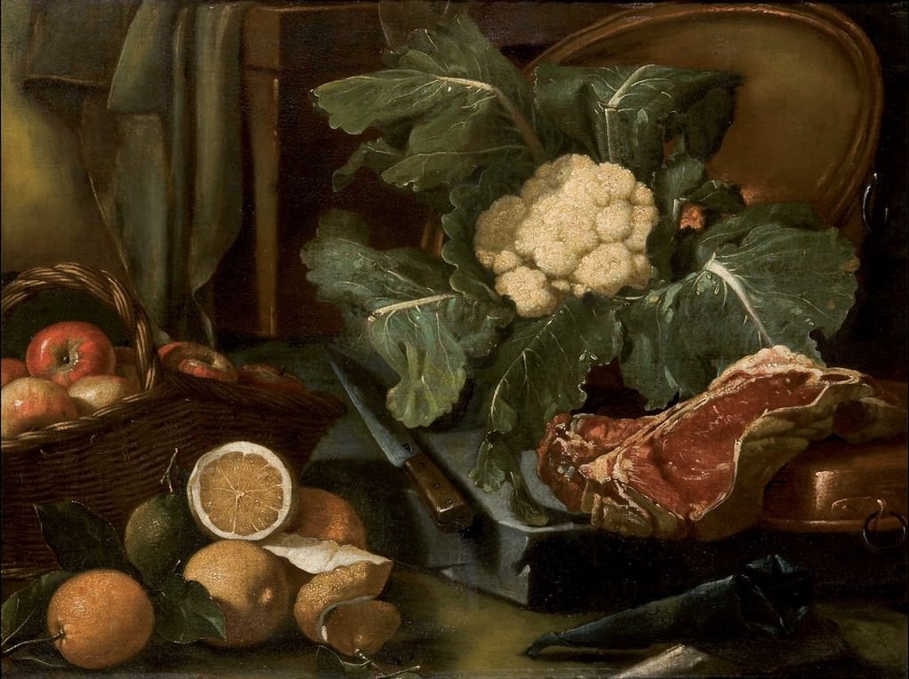 Spesso sulla scia di Annibale Carracci, che in gioventù dipinse con naturalezza una macelleria e tra gli altri un indimenticabile figuro che si avventa su un piatto di fagioli (forse era affamato, tuttavia quei fagioli dovevano essere davvero saporiti), gli artisti di questa mostra eseguirono opere in cui la voluttà della pittura sposa le asperità delle croste dei taralli e dei pani, le coste callose delle foglie di verza, le superfici scivolose dei crostacei e dei pesci, lo spiumio arioso e morbido della selvaggina ancora tiepida di vita... Con scenari raffinatissimi, o con mense di modesta levatura, il linguaggio della “natura morta” racconta i cibi della terra e del mare, spesso con sfondi di struggenti paesaggi.