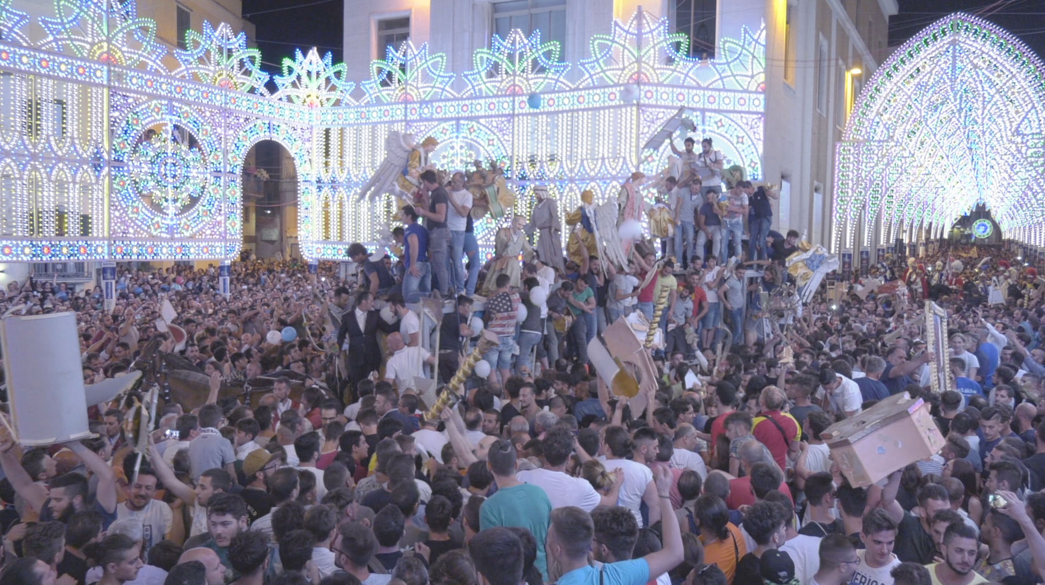 A cura di Marta Cereda, “Il cielo stellato” è un progetto artistico e cinematografico incentrato sulla festa della Madonna della Bruna di Matera, caso studio analizzato dall’artista come evento sempre più raccontato dalle immagini che la documentano e testimonianza dei grandi cambiamenti storici, sociali e tecnologici.