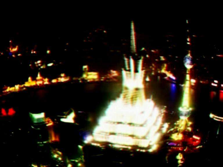 “Una Shangai sognata, sopravvenuta apparizione notturna di una metropoli lontana e avvolta nel buio, in cui lo sfarfallare di pixel dato dalla bassa risoluzione delle immagini scaricate (immagini cercate e raccolte dall’artista tra i video dei turisti), a sua volta simbolico della lacunosità d’informazioni, dei “punti oscuri”, si unisce alle nebbie colorate e agli effetti visivi applicati per costruire una immagine onirica che è anche la ricostruzione di uno specifico e riconoscibile pezzo della città visto da lontano. Uno sguardo-metafora sulla Cina che si avverte come sempre più vicina, anche se in fondo per la maggior parte della popolazione mondiale resta una entità lontana e trasmessa da lontano, per tele-visione.”