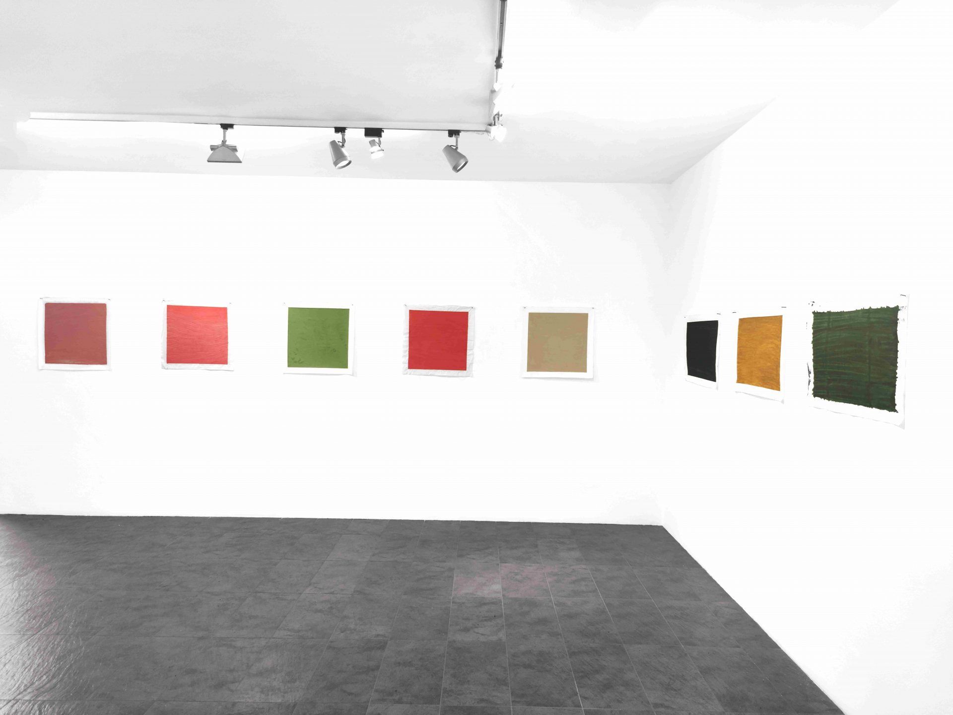 Cacciola ha infatti realizzato le opere in mostra durante i suoi viaggi in luoghi lontani, come l’Argentina o Cuba, dove ha raccolto pigmenti e vere e proprie terre – la terra lavica, o il fango di qualche fiume, per esempio -, che ha steso su tele, quasi sempre en plein air. Questa semplice azione produce monocromi a volte imperfetti, rugosi, quasi da sedimento tellurico, ma soprattutto aggiunge volutamente il senso del viaggio e l’immagine dell’artista che sceglie un “luogo” dove stare per fare arte.