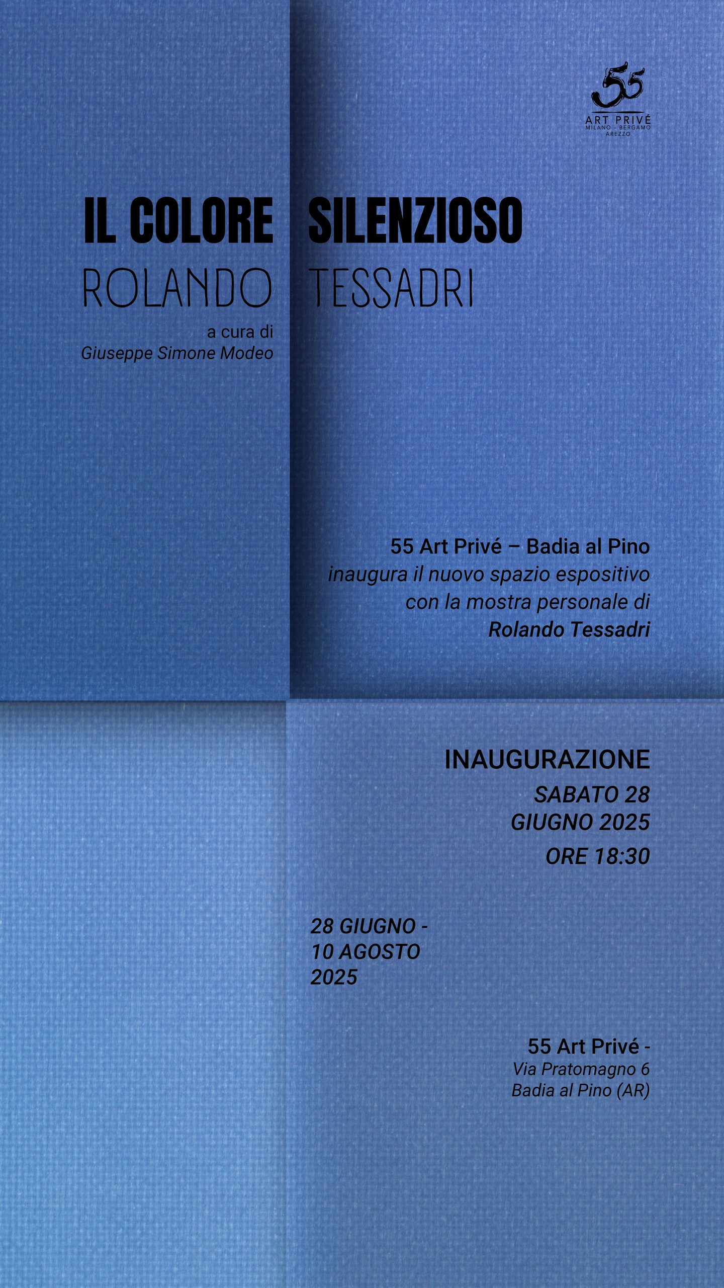 55 Art Privé inaugura il nuovo spazio espositivo di Badia al Pino (Arezzo) con la mostra di Rolando Tessadri, artista che da oltre trent’anni sviluppa una pittura rigorosa, silenziosa e profondamente contemporanea.