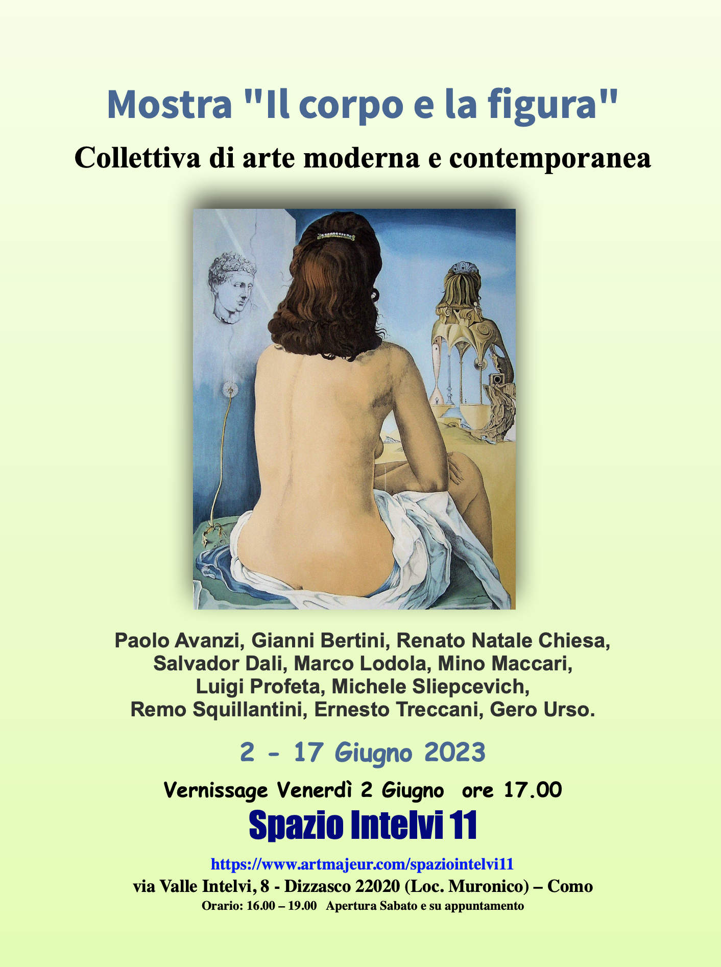Lo Spazio Intelvi 11 ospita una selezione di opere su tela, litografie e serigrafie di artisti che hanno come tema la figura umana e il corpo.