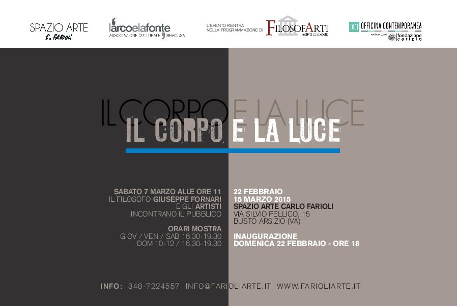 In occasione del festival Filosofarti, l’associazione Spazio Arte Carlo Farioli di Busto Arsizio ospiterà la mostra “Il Corpo e la Luce”, in collaborazione con l’associazione “L’Arco e la Fonte” di Siracusa: dieci artisti a confronto per una riflessione intorno al rapporto tra Sacralità e Bellezza.