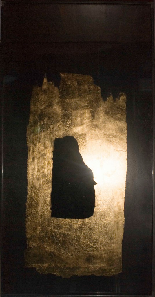 Scrive Mya Lurgo: Il credente è quella parte di noi assuefatta alle convinzioni / credenze che informano le circostanze. Il mutante è quella parte in potenza che cerca una via d’espressione per evolvere e (com)muovere l’esistenza. I suoi lavori digitali danno forma alle parole: opere fluide di linee e colori che si compenetrano in dissolvenza, ricordando elementi come acqua e fuoco: essi paiono avere sospeso l’opposizione in nome di una dimensione superiore ove tutto convive nell’equilibrio che segue la distruzione delle apparenze, delle illusorie antitesi. Flavio Garavaglia l’artista-alchimista, con la serie Inscape, riflette profondamente sull’ incontro dell’individuo con se stesso affrontando il lungo cammino dell’introspezione e della sua proiezione sul mondo. L’oro, il ferro, la fuliggine, risultato della bruciatura, sono le luci e le ombre della visione e della realtà. Trovare l’essenza, liberata dalle rappresentazioni individuali costruite sulle paure del vero, è per l’artista lo scopo ultimo dell’esistenza e il significato del suo fare. Un’essenza che Yves Klein ha cercato e trovato attraverso l’immateriale, la sensibilità artistica sublimata fino ad eliminare il supporto, fino ad esporre una galleria vuota, impregnata di pura energia. Marco Brianza rende omaggio all’immaterialità usando il laser e la proiezione. La luce trasforma e difforma, il blu evoca l’infinito, la visione muta costantemente in relazione al nostro mutare.