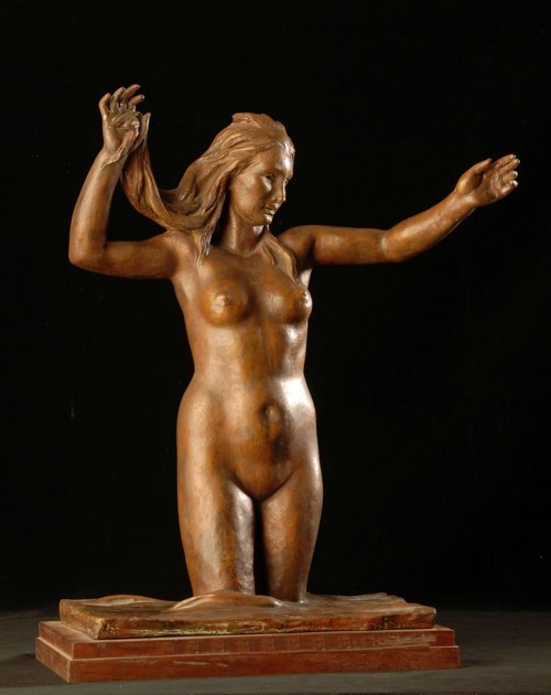 Ecco così che, a Torino, un ristretto novero di scultori (citiamo, in primis, Roberto Terracini, Adriano Alloati e Giovanni Taverna: tutti parimenti distanti da “Valori Plastici” e Novecento, dal déco quanto dalla più aulica e ufficiale estetica neolatina di marca littoria) si fece cantore ispirato di un ultimo (forse estremo) neoclassicismo grecizzante; un gusto d’ascendenza filosofica, rigoroso e tendente all’assoluto ma percorso da sottesi fremiti poetici, vagheggiato – dicevamo – attraverso la rappresentazione di figure femminili e attraverso i nitidi volumi della loro purezza trascendente: ieratica bellezza senza “tendini né vene”, sublime, incontaminata da sangue e umori.