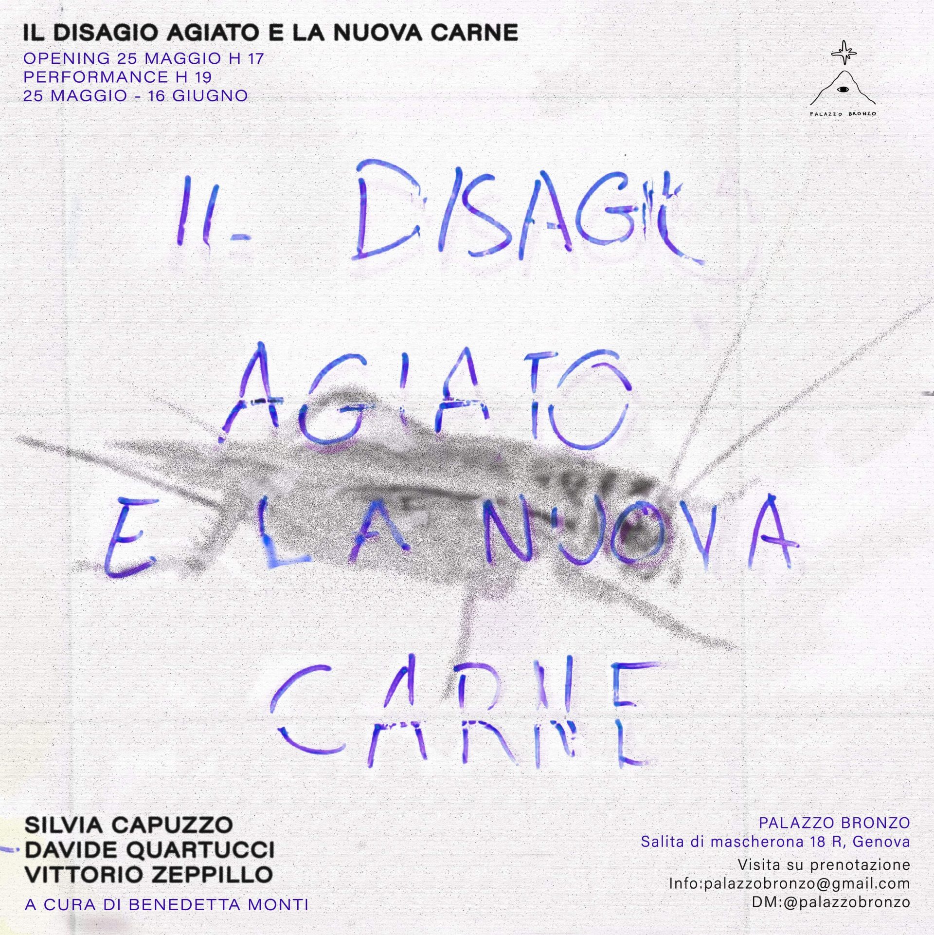 Palazzo Bronzo, spazio gestito da artisti nel cuore di Genova, presenta Il disagio agiato e la nuova carne, con Silvia Capuzzo, Davide Quartucci e Vittorio Zeppillo, a cura di Benedetta Monti, dal 25 maggio al 16 giugno 2024.