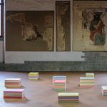 Shelf life si compone di 36 tele grezze su cui l’artista inglese traccia delle pennellate in gesso che richiamano le mille possibili configurazioni che i libri posati sullo scaffale di una libreria possono assumere nel corso della loro (e della nostra) vita. Le opere di Matilde Cassani e Andrea Romano sono frutto del periodo di residenza trascorso a Bergamo nei mesi di settembre ed ottobre 2020. Il progetto, realizzato grazie al sostegno di Fondazione Cariplo, prevedeva la realizzazione di un’opera inedita incentrata sulla tematica del Dono.