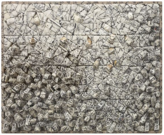 Chun Kwang Young (1944) fa collidere pittura e scultura in superfici animate da miriadi di pacchettini di carta Mulberry tinta col tè o altri pigmenti naturali, un ricordo d'infanzia legato all'uso coreano di impacchettare con la carta di giornale erbe medicinali e spezie. Come recita il titolo di questi quadri, essi sono "aggregazioni" di armonia e conflitto, di natura e cultura, di ordine e caos.