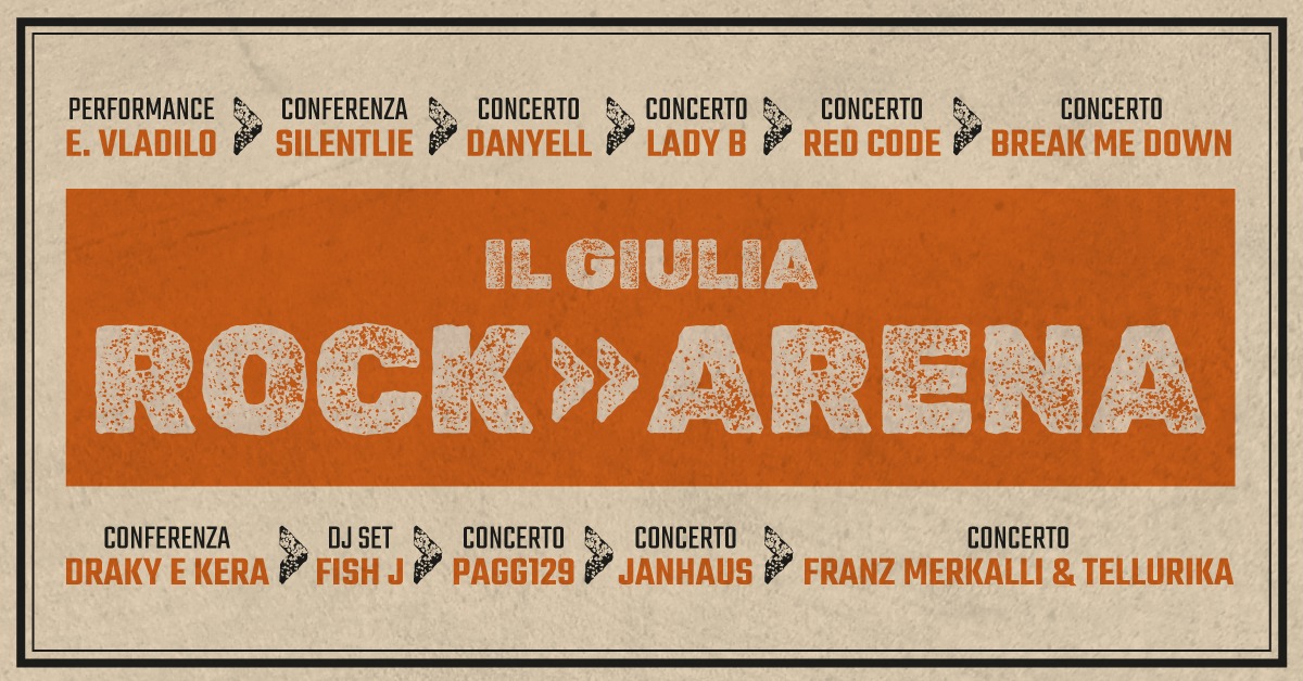 IL PROGRAMMA. IL GIULIA ROCK ARENA si articola nelle due giornate di sabato 24 settembre e sabato 8 ottobre 2022 con un'insieme articolato di attività, conferenze e musica dal vivo