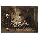 In asta anche due rare tele di Giovanni Grubacs raffiguranti vedute di Venezia, segnaliamo un evento caro e sentito dai veneziani, Festeggiamenti notturni per l’annessione all’Italia, per il quale sono richiesti 35.000/50.000 euro, mentre è di 25.000/35.000 euro la richiesta per un dipinto su tavoletta di dimensioni ridotte di Giovanni Fattori che ritrae una coppia di Carabinieri a cavallo, tutt’altra atmosfera è quella dell’amore materno che si respira nell’interno domestico della grande tela Il Bagnetto di Gaetano Chierici valutata 12.000/18.000 euro.