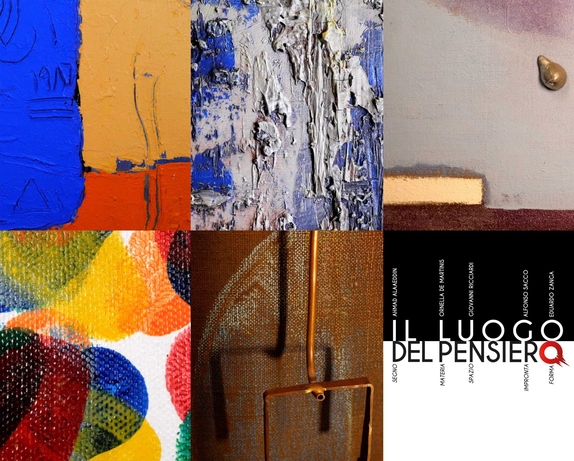 La mostra è la sintesi di un percorso di ricerca artistica e culturale che accomuna Ahmad Alaa Eddin, Ornella De Martinis, Giovanni Ricciardi, Alfonso Sacco, Eduardo Zanga, basato sui diversi elementi che li caratterizzano: segno, materia, spazio, impronta e forma.