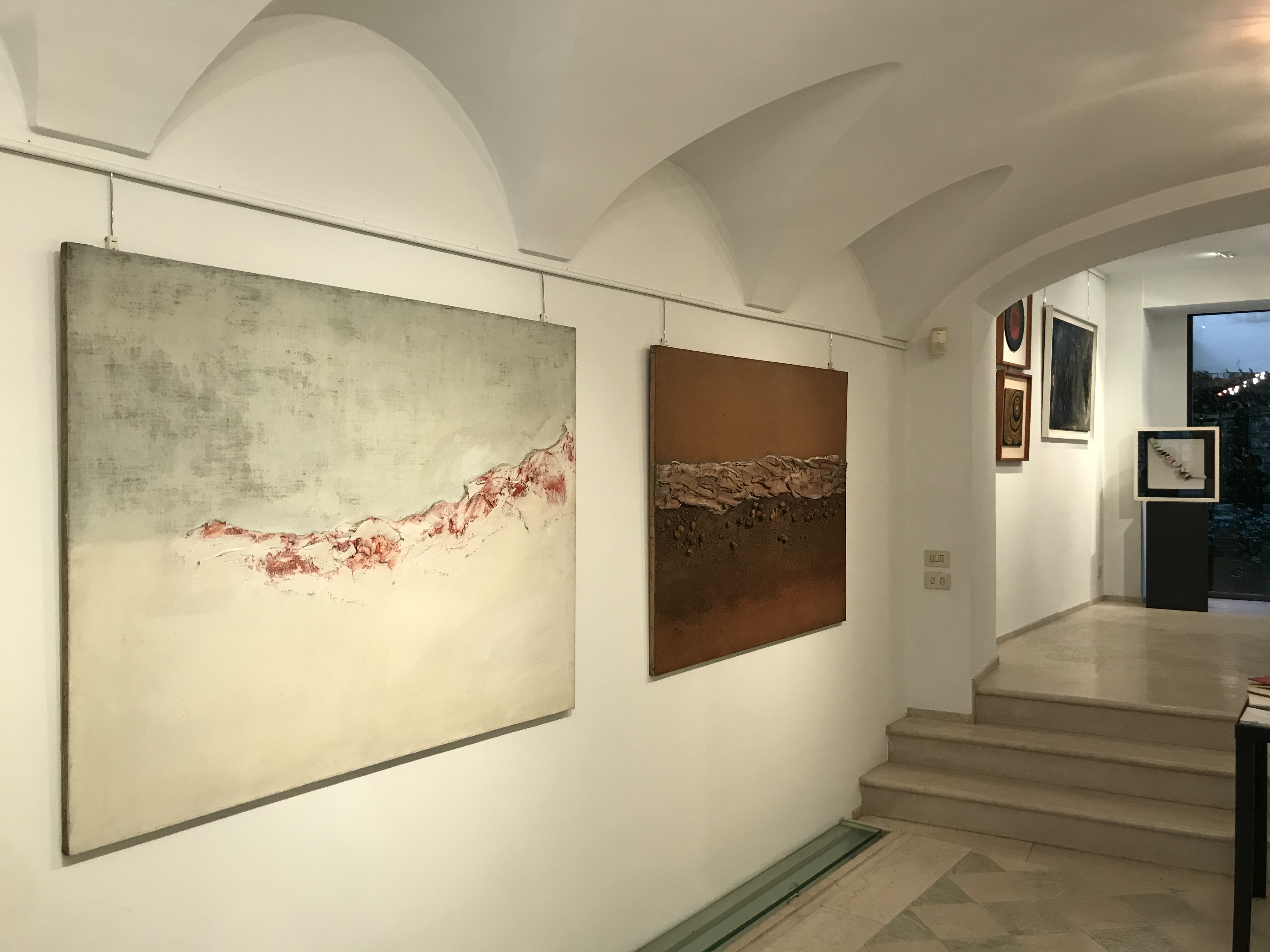 Presenti in mostra due straordinarie opere nelle quali il controllo degli effetti cromatici viene enfatizzato dalla materia e dal contrasto di toni scuri lucidi ed opachi.