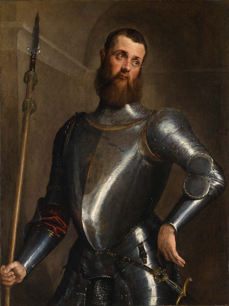 Vittoria Romani, nello studio redatto intorno a questo capolavoro, rileva che La condotta pittorica delluomo darmi appare... in sintonia con il clima lagunare, e anzi qui Bassano, che nei ritratti giovanili condivide il registro obiettivo di Lotto e di Moretto mostrando una peculiare riservatezza di sguardo verso i ritrattati, raccoglie la sfida tutta lagunare, risalente al magistero di Giorgione, degli effetti di luce incidente e dei riflessi sulle superfici specchianti delle armature. Colate di materia accesa nei punti di massima luce si alternano a una scrittura in punta di pennello, volta a risaltare gli ornamenti con loro spento e a cogliere i bagliori dei profili e della cotta di maglia che luccicano nellombra. Il grigio del metallo vira in azzurro nellombra, si mescola a riflessi bruni e si accende sul fianco sinistro del rosso della camicia. Su questo brano di pittura balenante di luce si innesta con un peculiare contrasto il volto leggermente reclinato sulla spalla, che introduce una nota sentimentale inattesa, gli occhi rivolti altrove, sgranati e liquidi.
