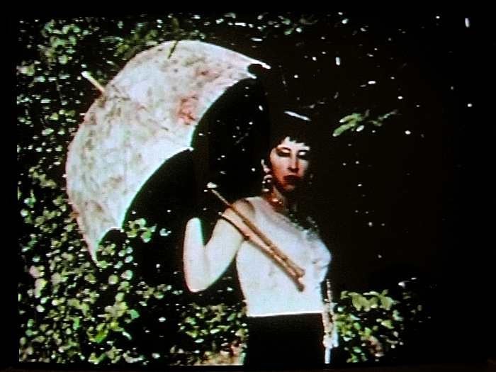 Ugo Nespolo (Italia, 1941) è presente con “Le gote in fiamme” un cortometraggio del 1967 che vede protagonista una donna con in mano un ombrellino. Ricordando gli impressionisti dell’800, la donna usa l’ombrello non per ripararsi dal sole ma per cambiarsi d’abito col finale a sorpresa. L’artista ha prodotto molti film da 1966 ai nostri giorni. Nei suoi cast, ha invitato artisti di calibro internazionale, come con Lucio Fontana, Enrico Baj, Renato Volpini, Carla Vignola, Daniela Chiaperotti, Giorgio Piana per “La galante avventura del cavaliere dal lieto volto” o “Boettinbianchenero” con Alighiero Boetti, ed ancora “ Buongiorno Michelangelo” con Michelangelo Pistoletto, Gian Enzo Sperone, Gilberto Zorio ed altri.