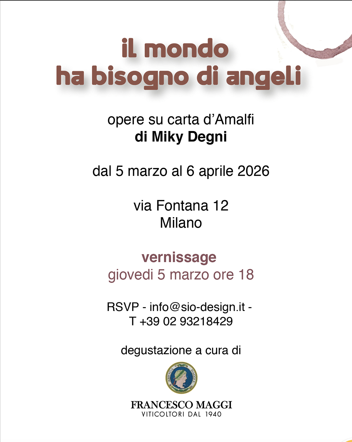 La mostra “IL MONDO HA BISOGNO DI ANGELI” segna il ritorno di Miky Degni nella sua Milano, trasformando lo Spazio Neutro di via Fontana in un palcoscenico dove il vino si fa pigmento e messaggio sociale.