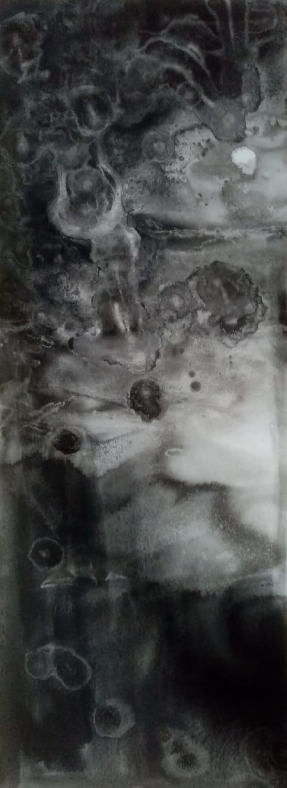 Davide Sforzini - Le notti di luce sono opere in nero nelle quali l'inchiostro calcografico si spacca, grazie a reazioni chimiche, per rivelare la luce. Nell'ombra di una notte interiore si aprono spiragli di vita che ribolle pronta a rivelarsi in potenza. Nei Tentativi abitati in paesaggi casuali, la sperimentazione con diversi componenti minerali racconta del rapporto intimo con la ricerca attraversata dalla presenza casuale di insetti che, minimi difensori dell'esistenza, riportano al mondo, alla vita, all'instintiva grandezza dell'essere.