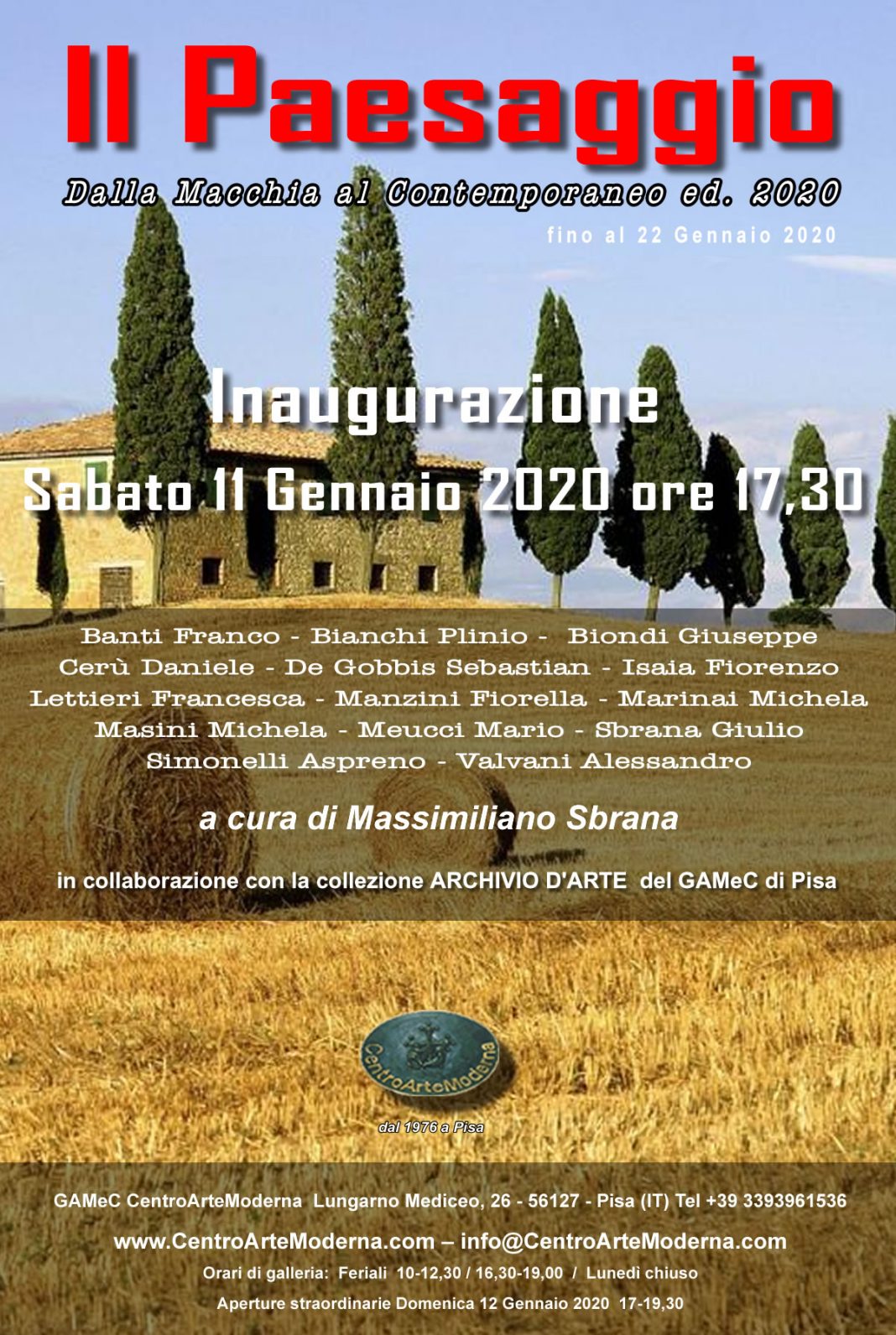 Si inaugura Sabato 11 Gennaio 2020 alle ore 17,30 (visitabile fino al 22 Gennaio 2020 con ingresso libero) a cura Massimiliano Sbrana, presso il GAMeC CentroArteModerna di Pisa (Lungarno Mediceo,26) la mostra "Dalla Macchia al Contemporaneo" dedicata al tema del "Il Paesaggio" .