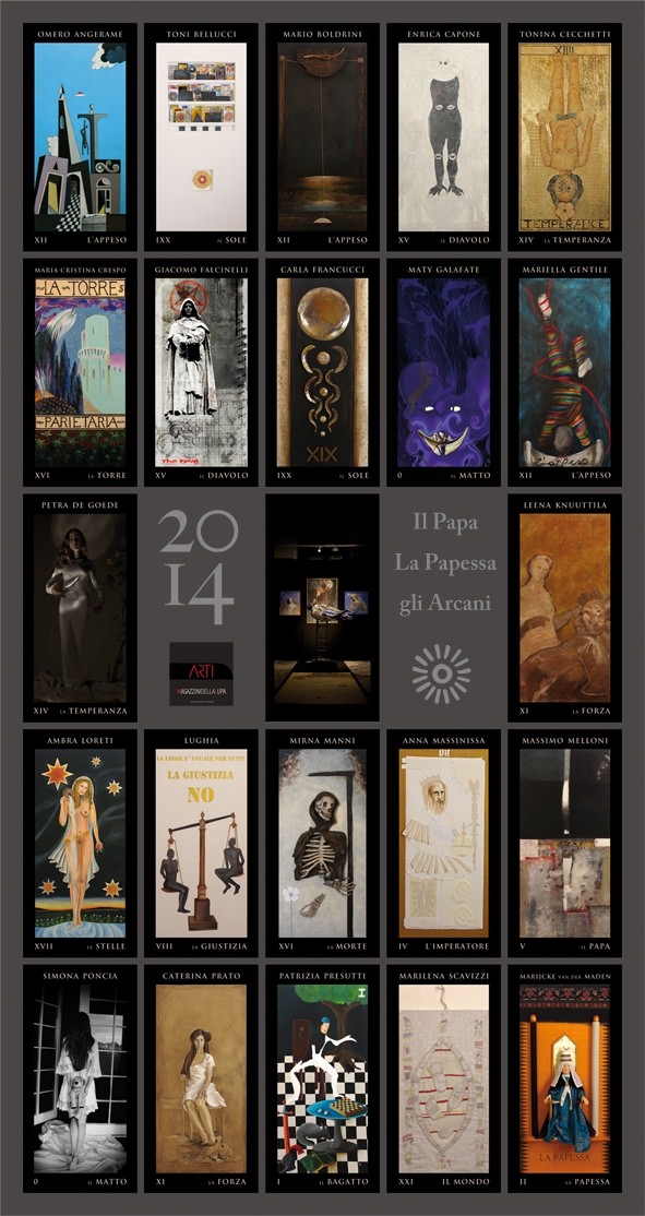 Sabato 31 maggio alle ore 18.00 presso l’ex Chiesa degli Almadiani a Viterbo, vernissage della mostra d’arte visiva “Il Papa, la Papessa, gli Arcani” che vedrà artisti contemporanei reinterpretare le misteriose figure degli Arcani Maggiori. Omero Angerame, Toni Bellucci, Mario Boldrini, Enrica Capone, Tonina Cecchetti, Maria Cristina Crespo, Giacomo Falcinelli, Carla Francucci, Maty Galafate, Mariella Gentile, Petra de Goede, Leena Knuuttila, Ambra Loreti, Lughia, Mirna Manni, Anna Massinissa, Massimo Melloni, Simona Poncia, Caterina Prato, Patrizia Presutti, Marilena Scavizzi, Anna Uncini e Marijcke Van der Maden sono gli artisti partecipanti alla mostra. Ognuno di loro, seppur proveniente da diverse realtà artistiche, si è cimentato appositamente per questo evento, nella reinterpretazione delle misteriose figure degli Arcani Maggiori, portando una personale e suggestiva visione, con uno stile proprio e riconoscibile e con una poetica del tutto personale. A dare ancor di più prestigio all’evento sarà la partecipazione straordinaria del Maestro Alessandro Kokocinscki che offrirà, in esposizione, la potente e fragile bellezza della sua installazione “Il Cielo Celato”. La mostra, con presentazione a cura del critico d’arte Luciano Marziano, è organizzata dall’Associazione Culturale Magazzini della Lupa ed ha il Patrocinio del Comune di Viterbo. Saranno esposte 44 opere dal formato di 140x70 cm, che reinterpretano le lame del mazzo di carte più misterioso e celebre della storia. Ogni artista ha infatti lavorato su due carte, il soggetto di uno dei tarocchi è stato liberamente scelto, mentre l’attribuzione dell’altro arcano è avvenuta sulla base di un sorteggio; inoltre sarà in esposizione un video appositamente creato per l’evento. Con linguaggi diversi gli artisti hanno realizzato in modi originali ed unici, come unica è sempre un’opera d’arte, tutta la carica simbolica degli arcani, attraverso i più eterogenei mezzi espressivi, che spaziano dalla pittura alla scultura, dal collage all’elaborazione fotografica, dalla tessitura alla ceramica, dalla fotografia tradizionale al video … Con una interpretazione personale e profondamente sensibile alla cultura e al momento storico attraversato, ogni artista ha voluto scrivere due pagine di questo libro muto, che parla per immagini, perché i tarocchi diffondono il loro messaggio non con la parola ma solo attraverso figurazioni e simboli che creano un linguaggio codificato. E la magia dei Tarocchi consiste proprio in quelle immagini che hanno un grande potere evocativo e in quei simboli che ci toccano emotivamente ed entrano in risonanza profonda con il nostro inconscio. L’esposizione è corredata da un catalogo, ovvero un raffinato mazzo di Tarocchi, le cui Lame sono le suggestive immagini delle opere in mostra.
