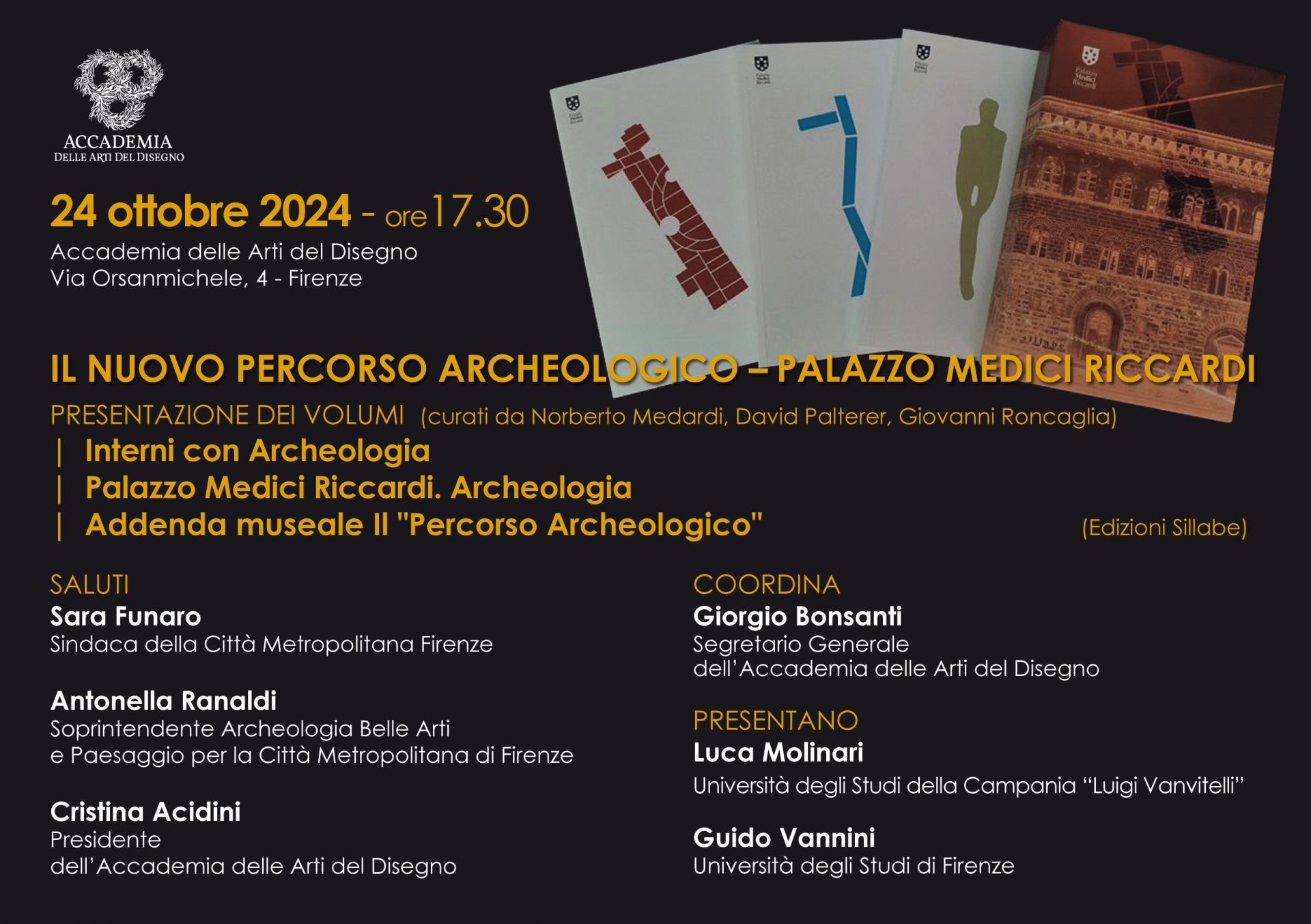 Presentazione del cofanetto con i tre volumi relativi alla realizzazione del nuovo Percorso Archeologico di Palazzo Medici Riccardi: “Interni con Archeologia”, “Palazzo Medici Riccardi. Archeologia”, “Addenda museale. Il Percorso Archeologico”