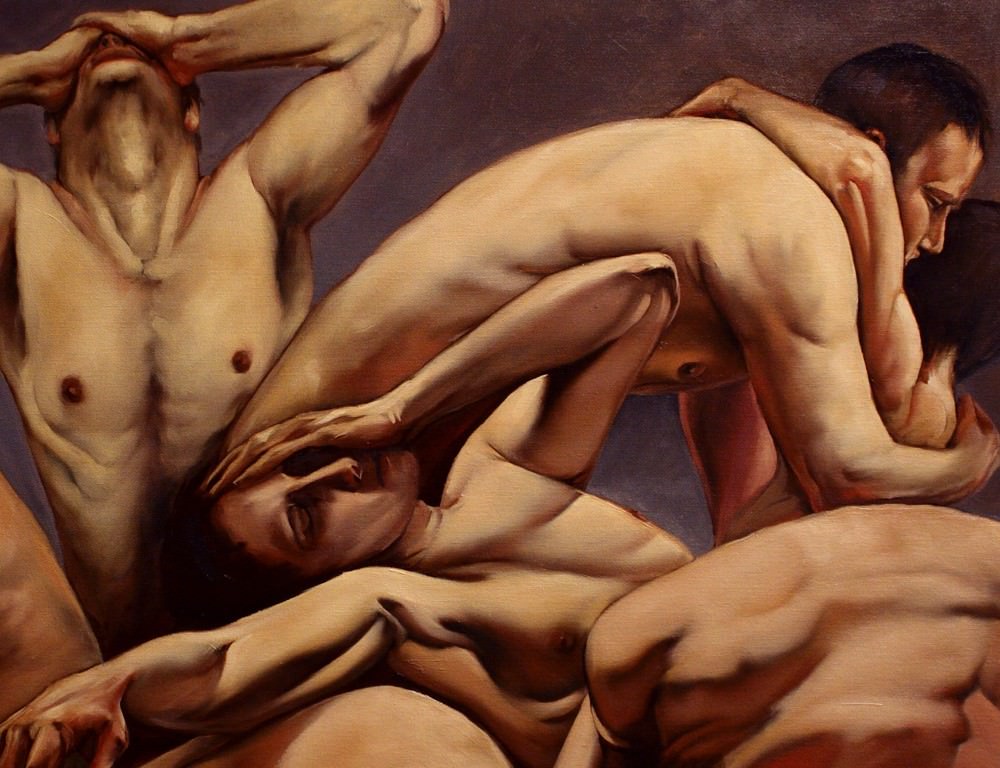 Fra i quadri esposti, ci sono due opere di grandi dimensioni e coppie di opere più piccole, che si richiamano l'un l'altra, come Caino e Abele, in cui il bene e il male si confondono e nell'insieme ricompongono un equilibrio e pervengono all'unità.