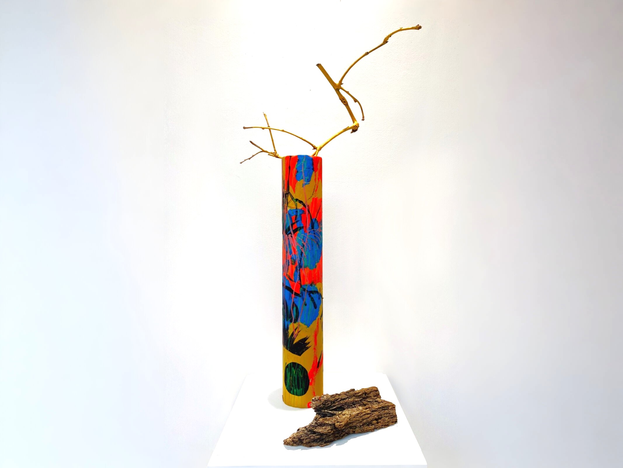 Questo format, trova un punto di connessione perfetto con Ramo d’oro, opera creata appositamente per Piano Terra. Il lavoro, accompagnato da un testo critico di Cecilia Canziani, è ispirato a riflessioni sulla natura, il tempo e lo spazio circostante. Un elemento centrale del lavoro di Montessori è l’uso di carta e materiali naturali: per quest’opera l’artista ha impiegato un tubo di recupero, supporto interno della carta da spolvero, generando così una profonda riflessione sul concetto di anima e spiritualità.