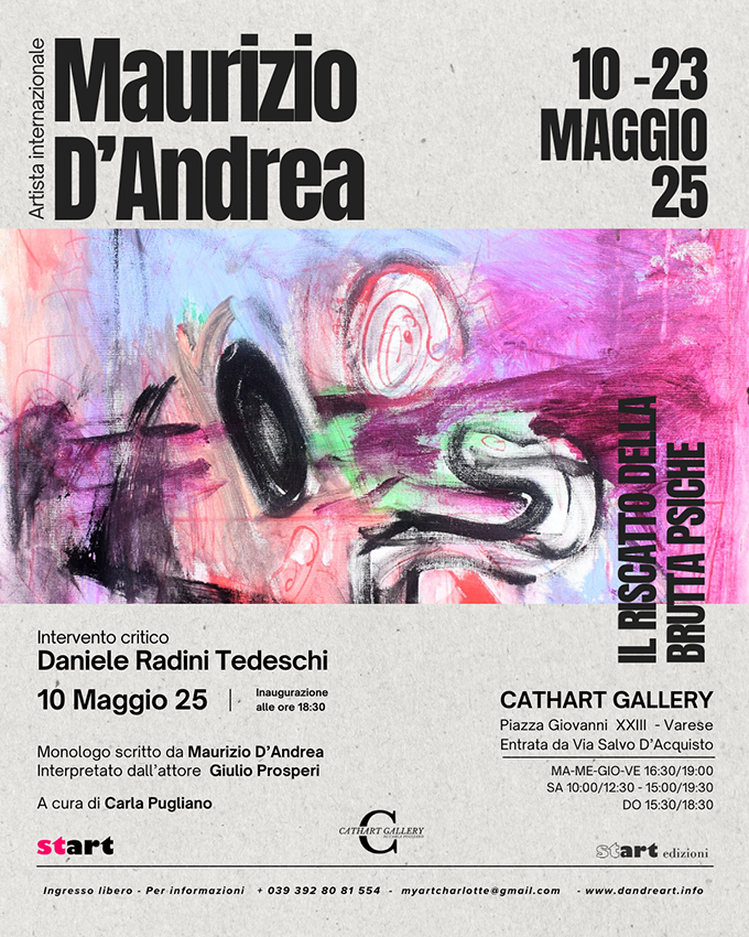 Sabato 10 maggio 2025, a Varese la Cathart Gallery ospita l’artista internazionale Maurizio D’Andrea in un evento di grande intensità, arricchito dalla presenza straordinaria del noto Critico e Storico dell’Arte Daniele Radini Tedeschi, voce tra le più autorevoli del panorama artistico contemporaneo, nonché curatore di sei edizioni alla Biennale di Venezia.