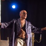 Cristian Masella, nel ruolo del Servitore, gioca abilmente tra commedia e tragedia con una recitazione appassionata, intima e agile allo stesso tempo, proprio come un giullare, un circense che ben conosce la “crudeltà”; quella del suo mestiere, il Buffone di Corte al soldo del suo padrone, ma anche del suo stesso pubblico che gode a vederlo in equilibrio sulla fune per farsi salva la vita.