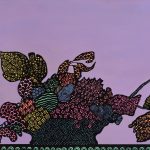 Un complesso lavoro sull’archeologia dei linguaggi, che diventano nuances archetipiche da far vivere in mondi conosciuti dando loro una nuova identità in forma di decorative; questi cloissonnes di colore sono racchiusi, a loro volta, in un reticolo fatto da “macchie” ben distinte che sono veri e proprie texture con le quali si leggono sfondi o si percepiscono atmosfere nel lontano.”
