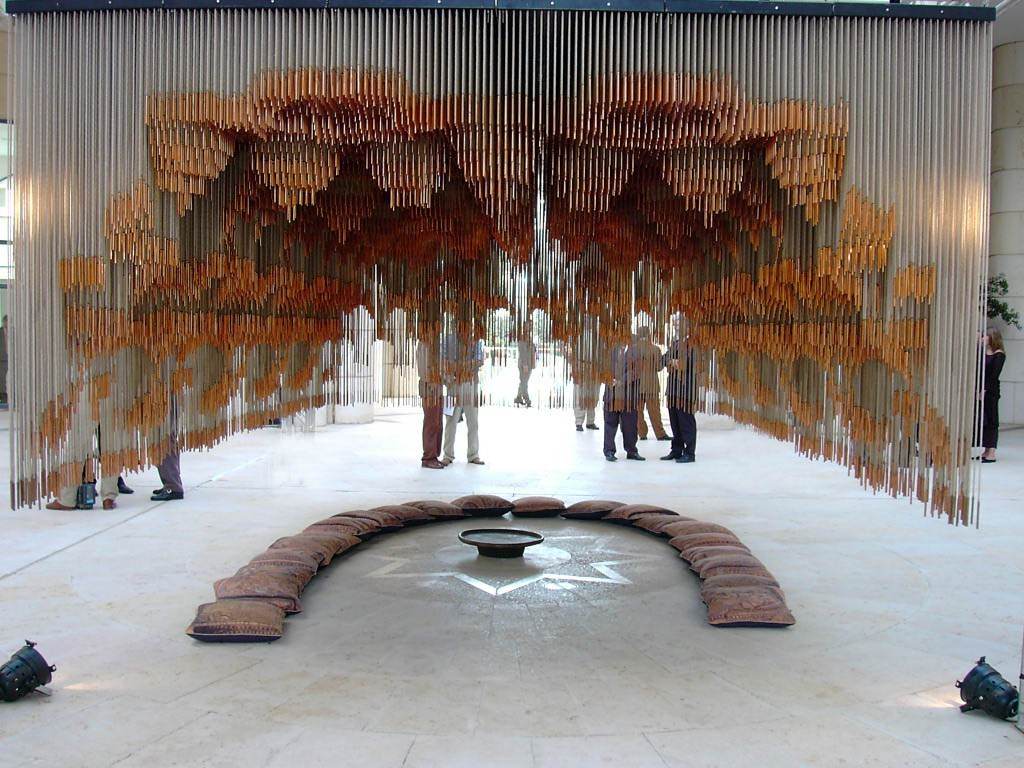 Il Tappeto Volante, realizzato da Stalker nel centro dei rifugiati curdi Ararat di Roma presso il Campo Boario, riproduce, in corde e rame, il soffitto islamico della Cappella Palatina di Palermo, riattualizzando la relazione tra culture diverse che lo aveva generato nell’XII secolo.