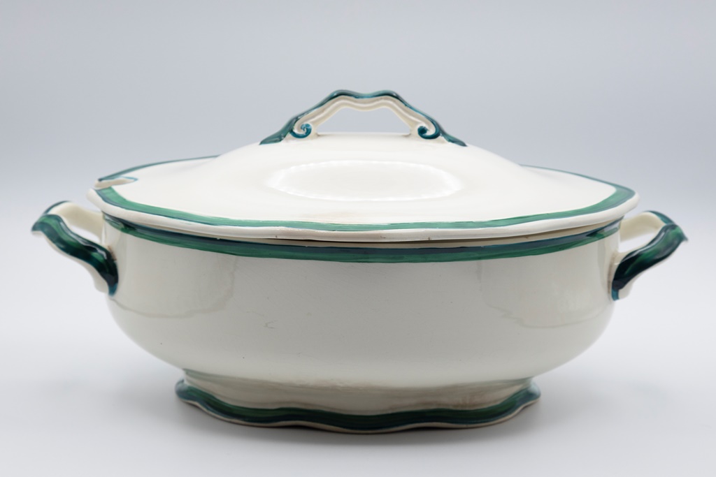 La mostra presenta per la prima volta servizi da tavola in ceramica di manifattura lavenese provenienti da importanti collezioni private