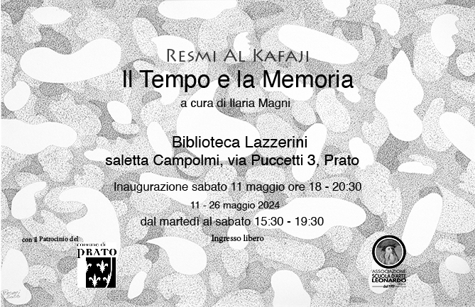 Con il Patrocinio del Comune di Prato l’11 maggio 2024 presso la Sala Campolmi della Biblioteca Comunale Lazzerini si inaugura Il Tempo e la Memoria, mostra personale di Resmi Al Kafaji, organizzata dall’ Associazione Scuola d’Arte Leonardo, a cura e con presentazione del critico d’arte Ilaria Magni
