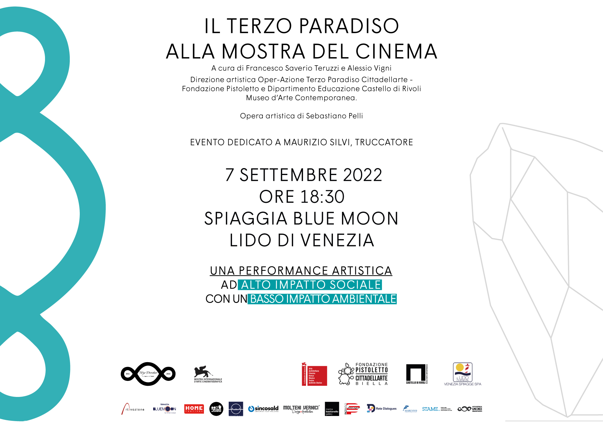 La performance Il Terzo Paradiso alla Mostra del Cinema è dedicata a Maurizio Silvi, truccatore recentemente scomparso, in rappresentanza di tutte le professionalità che con il proprio lavoro permettono la realizzazione di quella magia che chiamiamo CINEMA.