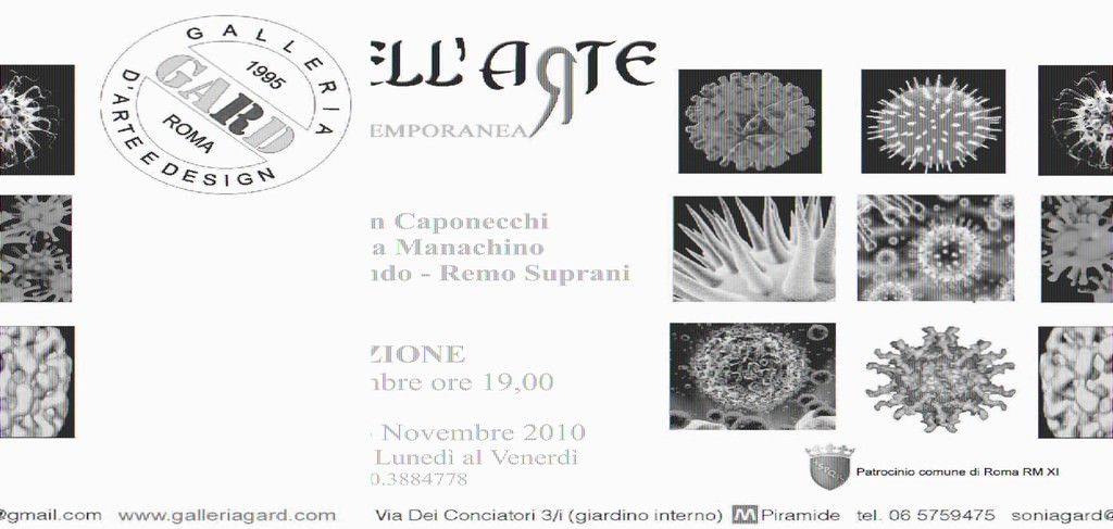 In un periodo in cui ci si deve proteggere dai virus dell’influenza, che ogni anno si ripresentano più dilaganti e invasivi che mai, creando ogni volta uno stato spiacevole di impotenza collettiva, nervosismo, paura e paranoia; C’è sempre stato un altro virus, non stagionale, da accogliere invece a pieni polmoni per vivere meglio: “Il Virus dell’Arte”, un virus che coinvolge tutti i sensi, che da spago alla fantasia, all'immaginazione di tutte le generazione, suscitando emozioni sempre diverse. La definizione di ogni linguaggio d'Arte è procurare sensazioni. Si inaugura il 17 novembre, presso la Galleria “GARD”, la seconda edizione dell’esposizione di arte contemporanea denominata “Il Virus dell’Arte”. In mostra opere di arte visiva realizzate da artisti, differenti per stile, tecnica e ricerca artistica, ma accomunati dallo stesso comune denominatore: il virus dilagante dell'arte che attacca le menti , e stimola la creatività, trasmettendo al fruitore, proprio come un virus, sensazioni ed emozioni sia al cervello che al corpo, attraverso la visione delle opere. Sarà possibile ammirare queste opere, nella sede espositiva della Gard a Roma, dove va sottolineata l'originalità e la qualità degli spazi espositivi, dislocati su due livelli, uno open space con grandi vetrate e l'altro, differente rispetto al primo, dall’atmosfera della Soho newyorchese. GARD ha infatti scelto come sede nel 97 un'ex deposito cartaceo abbandonato, trasformandolo in uno spazio multifunzionale di 600 mq dall’atmosfera newyorchese degli anni ottanta, situato in un giardino interno, dell'ex zona industriale del vecchio Porto Fluviale tra il Gazometro e la Piramide Cestia.