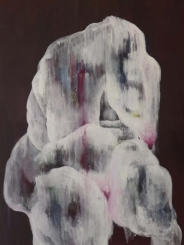 L’artista dà vita a quadri materici che sono quello che resta di corpi interiori, di un’esperienza “ieratica”. C’è la trasfigurazione delle sensazioni, il mutamento dell’espressione, il desiderio di non essere niente, procedere per sottrazione dopo aver accumulato materia. Il corpo resta contratto in un’implosione dentro e su se stesso. I corpi sono chiusi nelle loro stanze di colore, si muovono lenti e con la disinvoltura della nudità, pieni di carne, vibranti di colore annullato sotto gli strati di bianco