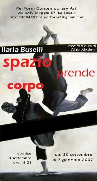 Corpo e spazio, pieno e vuoto, bianco e nero. Il gioco sulle più semplici e antiche - e proprio per questo difficili - dicotomie della percezione rivisitato nella pittura attraverso un’inedita e immaginifica riflessione sulla fotografia. La scelta della giovane artista Ilaria Buselli di sperimentare con l’uso prevalente del bianco e nero e di soggetti figurativi, nulla ha a che vedere con un orientamento elegantemente rétro o pavidamente realistico, e si rivela anzi come una miniera inesauribile di giochi spaziali e dinamici, attraverso cui la figura umana, quasi trasfigurata, si muove, appare e scompare, si mimetizza, riempie lo spazio e ne è svuotata, si impone e poi si sfalda. I soggetti nascono spesso da un’immagine impressa nella memoria da uno scatto fotografico, rivisitata attraverso il linguaggio tutto personale della creazione che sviluppa la potenzialità espressiva insita in ogni oggetto della nostra visione, facendo affiorare verità celate e trasfigurandone l’aspetto, che emerge come moltiplicato, aperto a più interpretazioni visive ed emotive. Nel dipinto Anatomia del vuoto, la suggestiva sequenza di una danza è fermata e scardinata dal suo contesto, con un taglio inconsueto e come casuale, lasciando la sensazione ambigua di trovarsi di fronte ad un’istantanea fotografica e al tempo stesso ad un’apparizione metamorfica, in cui si fondono il massimo dinamismo e una sorta di sospensione atemporale. Il denso nero del fondo è rotto dai graffi che solcano la tavola e da ombre rossastre, che si fanno più dense in Frammenti di una danza, in cui l’anomala inquadratura della scena accresce la sensazione di disorientamento e mistero, creando un’atmosfera lambita da una leggera inquietudine. Il gesto del danzatore, dal volto trasfigurato in un misterioso grido, sospeso sul fluido fondo rosso, evoca indefinite affinità con un gesto di terrorizzata ripulsa, quasi che il suo atletico salto, più che una movenza artistica, fosse un disperato atto di difesa, forse rivolto al misterioso, sconosciuto braccio che appare a sinistra. Il gioco spaziale si fa ancora più raffinato in Metamorfosi, in cui l’uso del bianco e del nero diventa una sorta di sfida alla distinzione tra pieno e vuoto, tra fondo e primo piano, in cui ad occupare lo spazio è un corpo costruito quasi come un negativo fotografico, dal movimento ambiguo, tra la trasformazione e l’energica danza, e in cui in fondo l’unico appiglio alla realtà fisica sembra essere offerto dalla teoria di tagli incisi sulla superficie. In Samurai e in Momenti la riflessione sulla danza si colora di notazioni tribali: nel primo dipinto la coppia di personaggi in bianco, immersa in uno spazio rossastro spezzato da tagli nervosi, sembra impersonare una tragica scena sospesa tra una finzione teatrale e un’onirica apparizione, in cui i tagli sulla superficie creano venature aranciate, quasi ad evocare un’atmosfera di tempesta che si addensa sui personaggi in lotta. Nel secondo, la superficie della tavola è nettamente scissa tra fondo, ancora sanguigno, e lo scivolare in avanti di una serie uniforme di figure impegnate in una sorta di danza rituale, tellurica, in cui sono ancora una volta le potenti incisioni sulla tavola a richiamare la vista dello spettatore verso l’unità del dipinto. La trasfigurazione è elemento essenziale di un’opera suggestiva come Impressione, che nasce da un vero ritratto fotografico, reso però al negativo e poi progressivamente sfaldato nella pittura, al punto da fargli perdere ogni connotazione individuale e tangibile consistenza e di trasformarlo invece in una sorta di apparizione, quasi fosse il materializzarsi di un ricordo che affiori fugacemente alla memoria, o il prendere corpo di un pensiero fortemente presente al nostro animo.