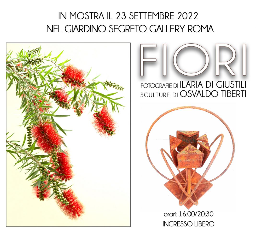 Al Giardino Segreto Gallery apre Fiori, mostra di fotografia e scultura di Ilaria Di Giustili e Osvaldo Tiberti. Le sculture in ferro di Osvaldo Tiberti dialogano con le fotografie floreali di Ilaria Di Giustili: due diversi linguaggi per affrontare in modo innovativo un tema tra i più praticati della storia dell'arte. Ilaria Di Giustili ha ideato una tecnica particolare per fotografare i fiori, con una stampa luminosa e rarefatta che li rende simili a ideogrammi giapponesi. Osvaldo Tiberti, scultore, pittore e orafo, amante della solidità e verità dei materiali, propone invece dei fiori stilizzati in ferro dalle sfaccettature geometriche, quasi dei gioielli in scala gigante la cui materia povera contrasta con la preziosità delle forme. L'allestimento nel giardino - tale è il Giardino Segreto Gallery - mette le opere in dialogo con la natura vera e viva, creando un gioco di rimandi che affonda le sue radici nella tradizione tardo rinascimentale.