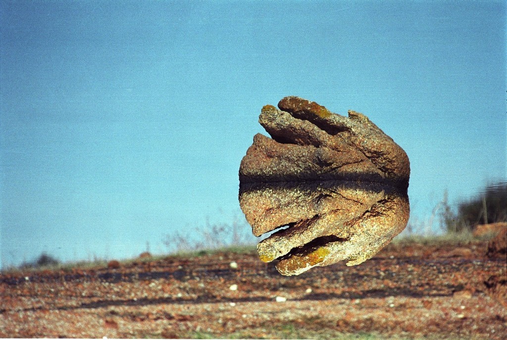 I luoghi diventano non-luoghi, riflessi di una realtà illusoria. I paesaggi della Florescu sono paesaggi effimeri, esistono solo in quanto rivelati dalla luce e fissati dall’occhio fotografico. L’acqua del mare, degli stagni, dei laghi diventa cielo e i suoi sassi si tramutano in comete, meteoriti, figure antropomorfiche che fendono l’aria velocemente o che si fermano statiche nell’infinito. Nella serie di dodici fotografie “Acqua di cometa” linee rette o ondulanti di luce, nel loro rifrangersi, compongono quadri dalle trame misteriose come misteriosa e da lontano, forse da una cometa, viene la figura che emerge nell’ultimo riquadro, silenziosa testimone di riti cosmogonici. Straniamento, curiosità, stupore sono le prime sensazioni che si provano osservando queste immagini. La mente, disorientata di fronte ad una libertà tale da sovvertire le leggi della fisica, si placa, si concede una pausa ricca di poesia, si apre e si affida all’irrazionale. Emana una forza quasi magnetica dai lavori della Florescu, realizzati con il semplice essenziale scatto della macchina fotografica: si imprimono nella mente creando una sorta di disorientamento cui non è estraneo il messaggio di Magritte e ci portano in viaggio lontano, altrove. Il titolo della mostra prende ispirazione da una teoria scientifica secondo la quale l’acqua della nostra terra deriverebbe in parte dall’evaporazione dei cristalli ghiacciati delle comete.