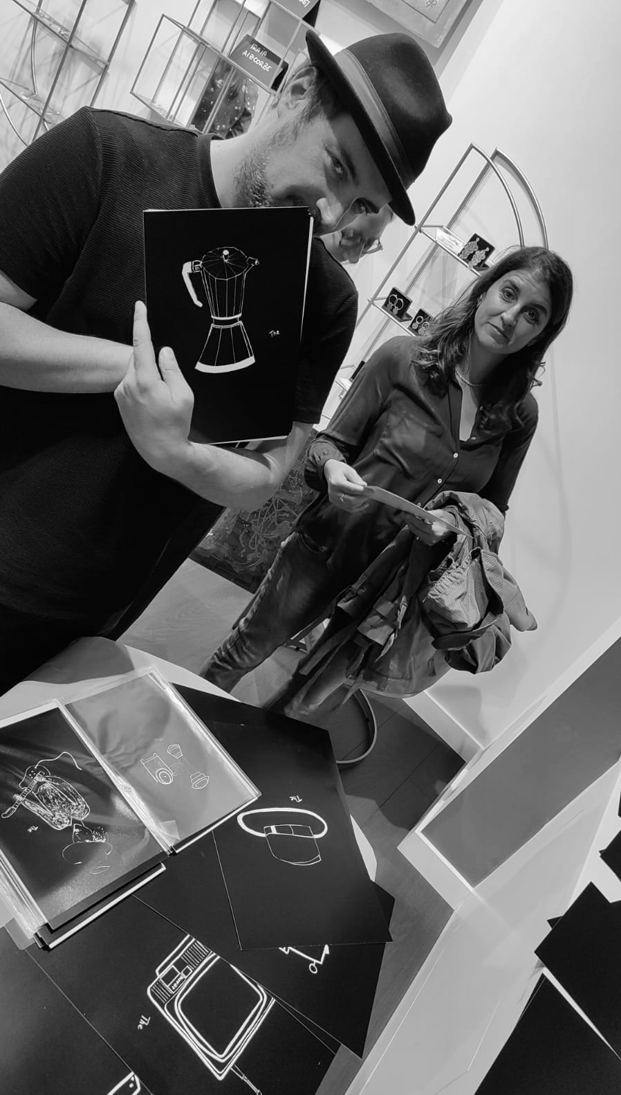 Davide Combusti, in arte The Niro, cantautore apprezzato sulla scena nazionale e internazionale, celebra i 15 anni di carriera musicale consacrandosi anche all’arte dell’illustrazione. Un fiume in piena, dirompente, versatile, Davide lascia fluire un’ispirazione vulcanica guidato da un raffinato gusto per il bello e per gli oggetti che hanno segnato la storia sociale dal secondo dopoguerra a oggi. Illustri Illustrazioni, progetto artistico attuale, quanto nostalgico, omaggia il design degli anni ’50, ’60, ’70 che ha dato linfa a nuovi canoni estetici e a nuove abitudini domestiche e di vita. The Niro ripercorre le tappe di questa evoluzione per fotogrammi: dalla mini-tv Brionvega alla moka Bialetti, passando per la 500, la Vespa, la Lambretta, le chitarre Eko e Meazzi, gli amplificatori Binson. Oggetti cult, ben vivi nella memoria di tutti (anche in modo inconsapevole), oggetti che hanno accompagnato la vita delle nostre case e che raccontano una storia, oggetti esposti nei musei di tutto il mondo. The Niro reinterpreta il design a mano libera, in modo istintivo, se vuoi imperfetto, ma con grande carisma. Un pennarello acrilico bianco corre su supporto nero, ne solca le superfici facendo emergere, come in un graffito, l’immagine: l’oggetto!
