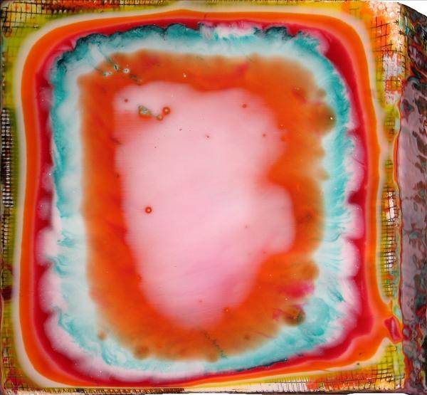 Gialli cristallini, verdi profondi e magenta scintillanti si rincorrono sulle superfici lucide e riflettenti di Robert Pan, si fondono e si scontrano. L’IMAGO crea mondi alternativi che hanno a che fare con il cosmo, con le nostre cellule, l’alchimia e la chimica.