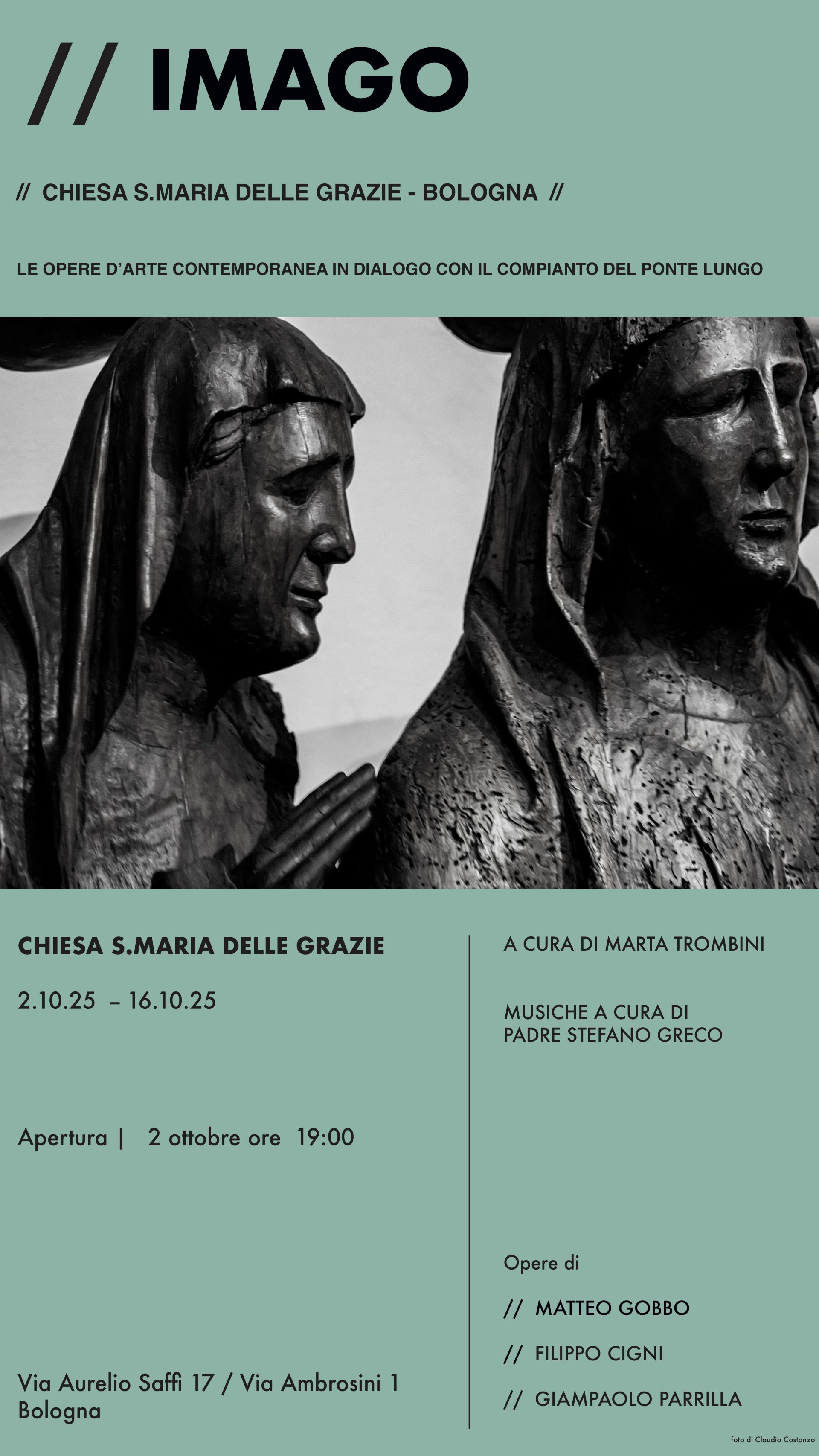 Le opere di Filippo Cigni, Matteo Gobbo e Giampaolo Parrilla dialogano con lo spazio della chiesa di Santa Maria delle Grazie, ponendosi in relazione con le opere già presenti, prima fra tutte il Compianto ligneo di fattura toscana, realizzato nella seconda metà del 1300. L’iconografia del compianto, nella sua rappresentazione del dolore, ha creato i presupposti per un lavoro sull’immagine sacra vista con occhi contemporanei. Da questo incontro tra passato e presente nasce un progetto che vuole creare spunti riflessivi per un futuro che sappia trasmettere fede anche attraverso l’arte e l’immagine.