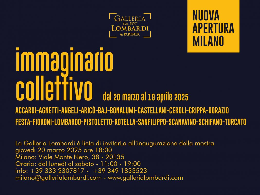 La Galleria Lombardi e Partner nasce dalla volontà di Lorenzo Lombardi e Claudio Bertino con la preziosa collaborazione di Alessandro Biffanti, per intraprendere una nuova avventura a Milano, inaugura nel nuovo spazio espositivo, con la mostra “Immaginario collettivo” dedicata ad opere degli anni Sessanta e Settanta.