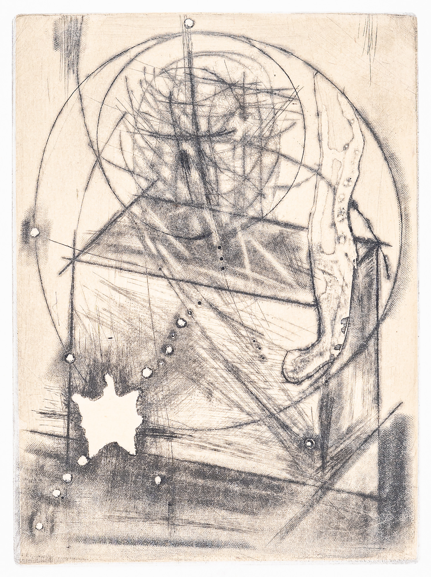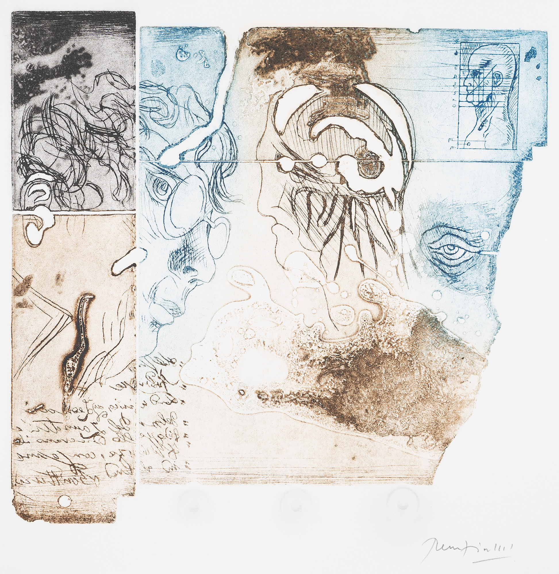Altre stampe e libri d’arte sono scaturiti dalla riflessione di Giatti sull’opera di importanti figure della letteratura (Dante) o della scienza (Newton), oppure sono stati realizzati dall’artista in collabora-zione e in dialogo con scrittori e poeti contemporanei quali Derek Walcott, Arturo Schwarz e Franco Loi. E proprio a una poesia del poeta milanese è ispirata l’incisione AAAC 116, “Passaggio di ombre”, stampata nell’Atelier calcografico di Novazzano per i membri dell’Associazione, che – precisa Remo Giatti – allude a “qualcosa di sensoriale, di impalpabile, di memorie e di immaterialità”.