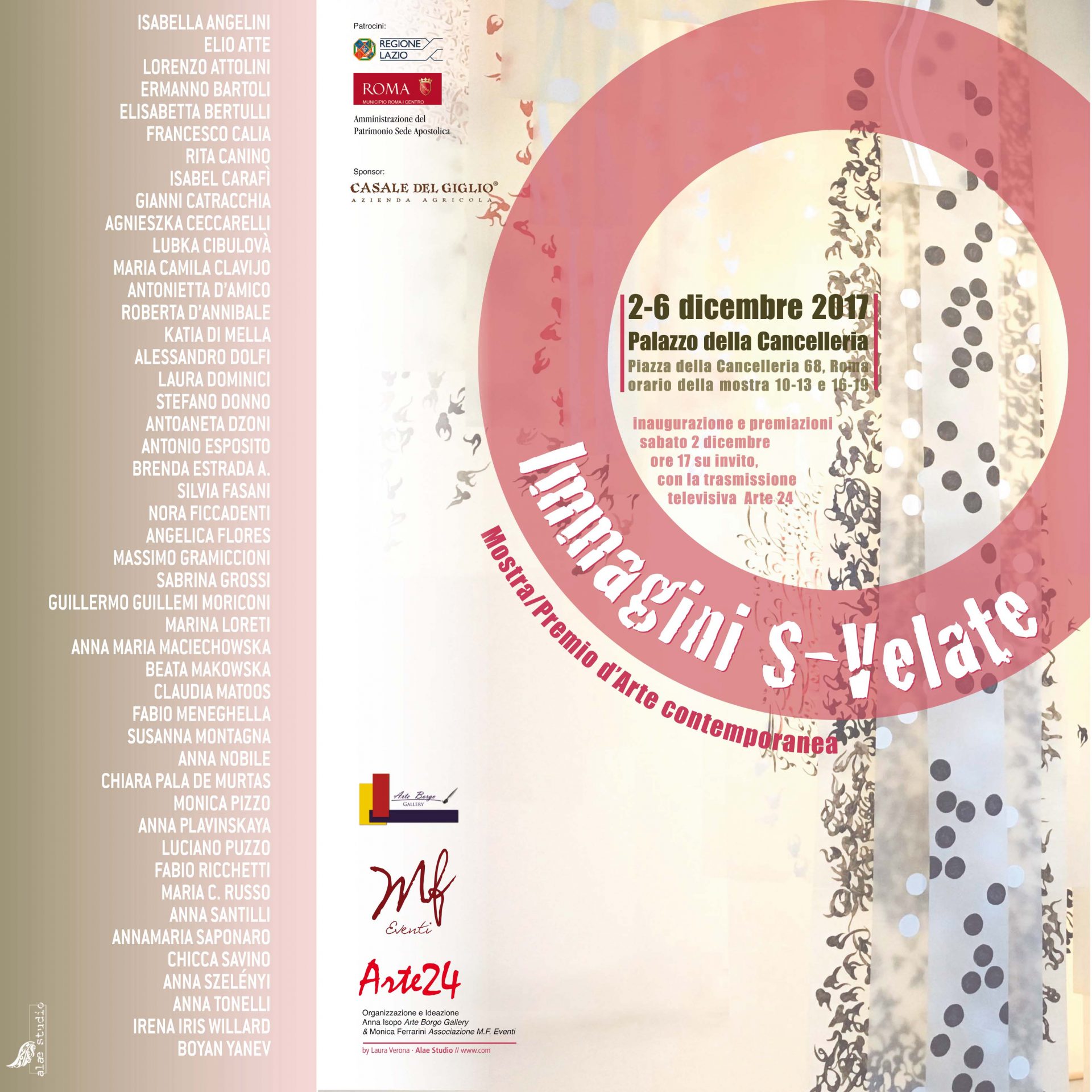 L’evento è curato da Anna Isopo di Arte Borgo Gallery e Monica Ferrarini di M.F.eventi e gode del patrocinio della Regione Lazio e del Municipio Roma I Centro. In occasione dell’inaugurazione sarà presente la trasmissione televisiva Arte 24.