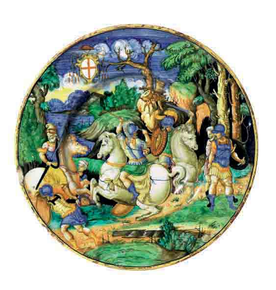 Su tutti ricordiamo la riscoperta di un’opera da collezione, transitata sul mercato ai primi del Novecento e poi assente, oggi di grande interesse per i collezionisti più colti e preparati, il PIATTO ISTORIATO con "La sconfitta dei Cananiti", eseguito da Luca Baldi probabilmente a Urbino per il Cardinale Robert di Lenoncourt nel 1550 (stima 40.000-60.000 euro). Il piatto, che sul retro reca la scritta " judas dux jstraelitarum expugnat Chananeos", e sulla tesa uno stemma che lo identifica come parte del servizio del cardinale de Lenoncourt, permette e promuove nuovi importanti studi rivolti a una miglior identificazione delle personalità artistiche che hanno operato nella bottega urbinate durante la prima metà del Cinquecento.